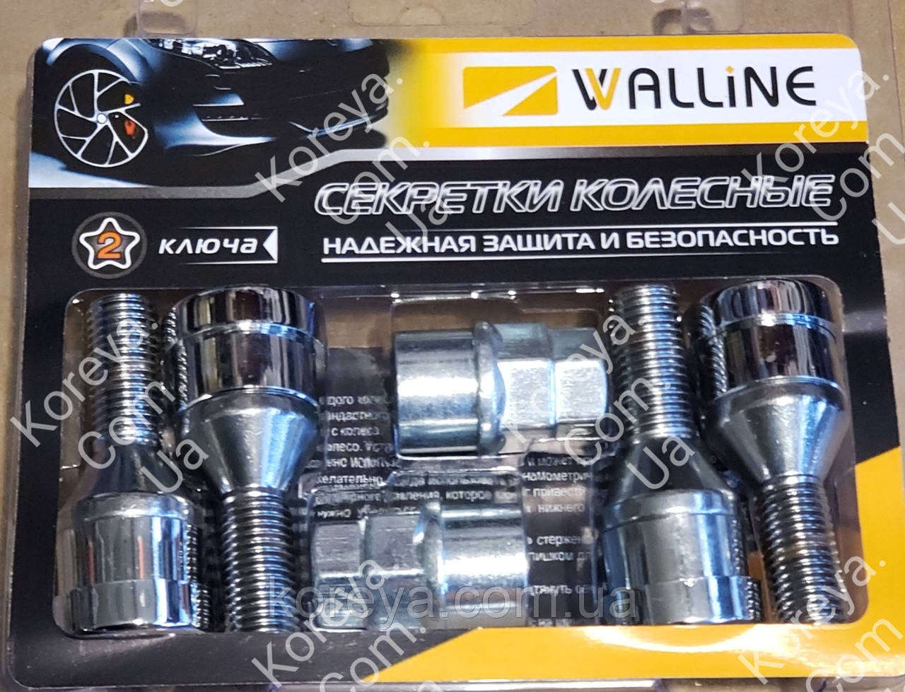 Болти секретки колісні Walline застосовуються для захисту автомобільних коліс від крадіжок. До комплекту входить 4 болти М12 х 1.5 + два ключі (головки), хромовані, дуже гарної якості. Головки розраховані на два типи балонного ключа 17 або 19 мм. так що під час встановлення не виникне жодних проблем.